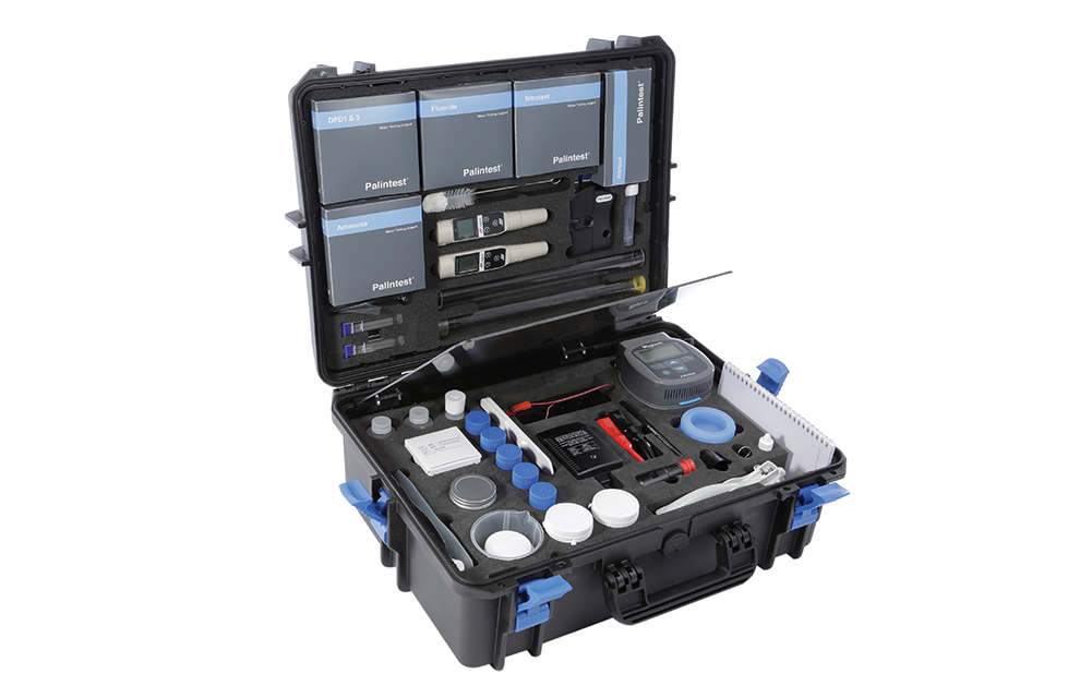 • Complete physico-chemical analysis – visual testing apparatus for turbidity, ammonia, arsenic, free and total chlorine, fluoride, nitrite and nitrate plus pocket sensors for pH and conductivity